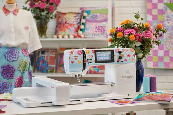 This limited edition model comes with a faceplate featuring the Big Blooms floral design by Kaffe Fassett. Gorgeous decorative stitches and embroidery designs by Kaffe are built-in. The machine also offers the latest sewing and embroidery functions, and includes unique accessories such as the BERNINA Stitch Regulator and the Patchwork Foot #97D everything you need to let your creativity blossom.